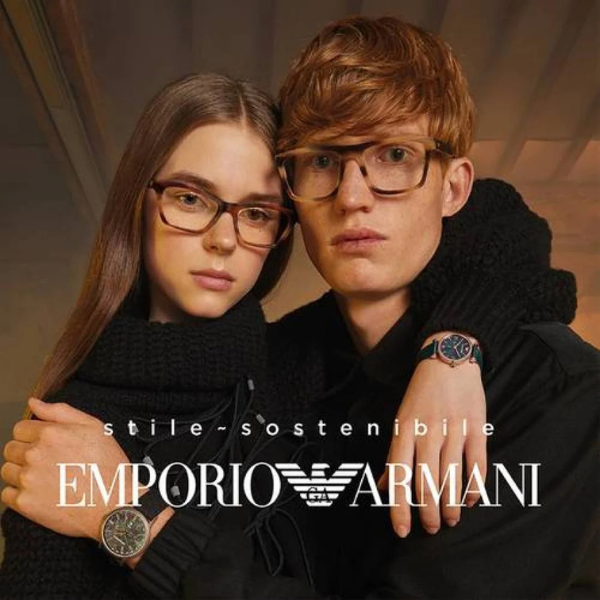แว่นตา Emporio Armani มักมีโลโก้รูป นกอินทรี อันเป็นสัญลักษณ์ของแบรนด์ หรือการออกแบบที่สะท้อนความหรูหราในสไตล์มินิมอล